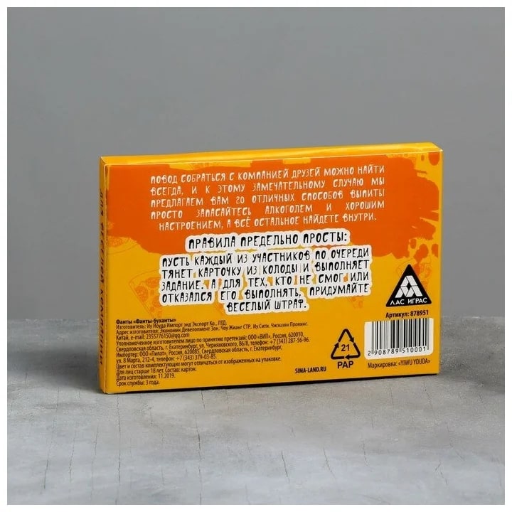 Купить игра для компании "фанты буханты" 20 карт от 100 руб. с доставкой до пункта выдачи в Усолье. Интернет магазин ДекаМаркет. Оплата при получении.
