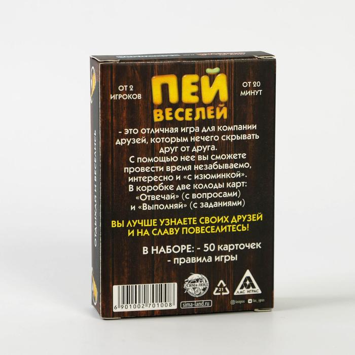 Купить игра для компании "пей веселей" 50 карт от 180 руб. с доставкой до пункта выдачи в Усолье. Интернет магазин ДекаМаркет. Оплата при получении.